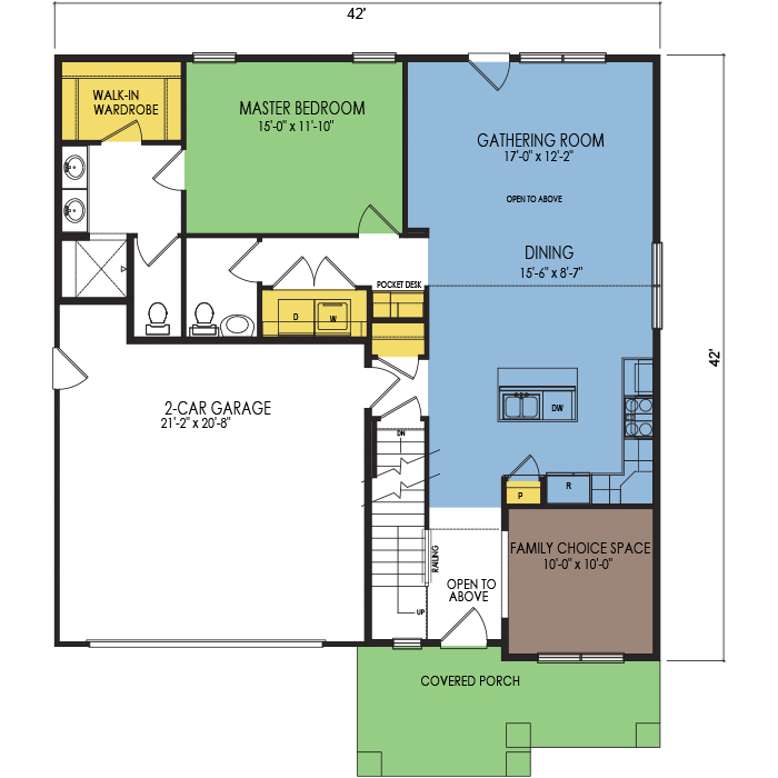 A part of our Resort Series, the Blackburn floor plan features 2 bedrooms and 2.5 bathrooms with a foot print of 42X42 feet and 1667 total square feet of living space. Floor Plan #RN324