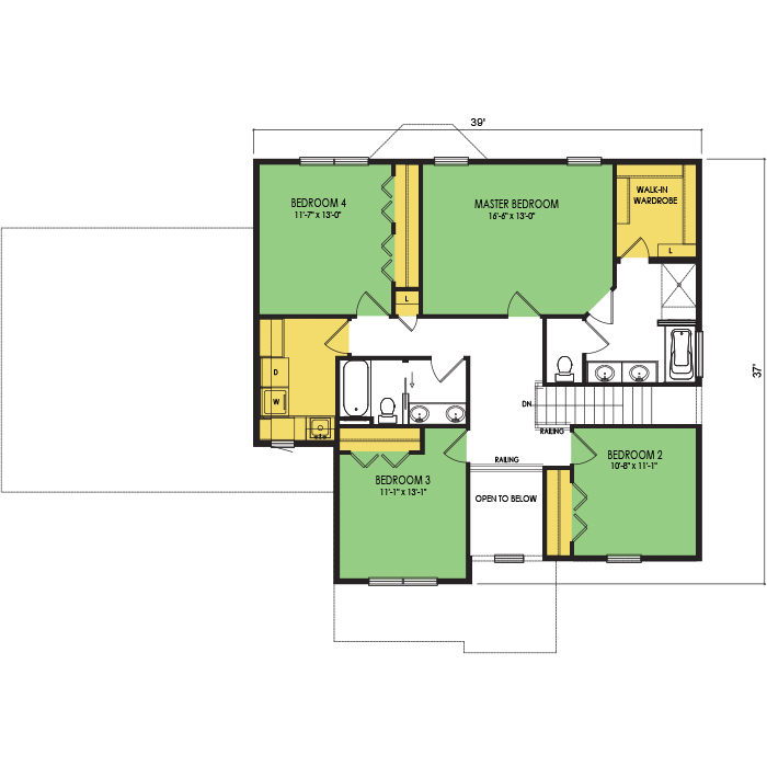 A part of our Family Series, the Cascade floor plan features 4 bedrooms and 2.5 bathrooms with a footprint of 62x40 feet and 2589 total square feet of living space. Floor Plan #FM278