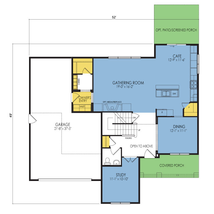 A part of our Designer Series, the Fishers Island floor plan features 4 bedrooms and 3.5 bathrooms with a foot print of 52x49 feet and 2600 total square feet of living space. Floor Plan #DN227