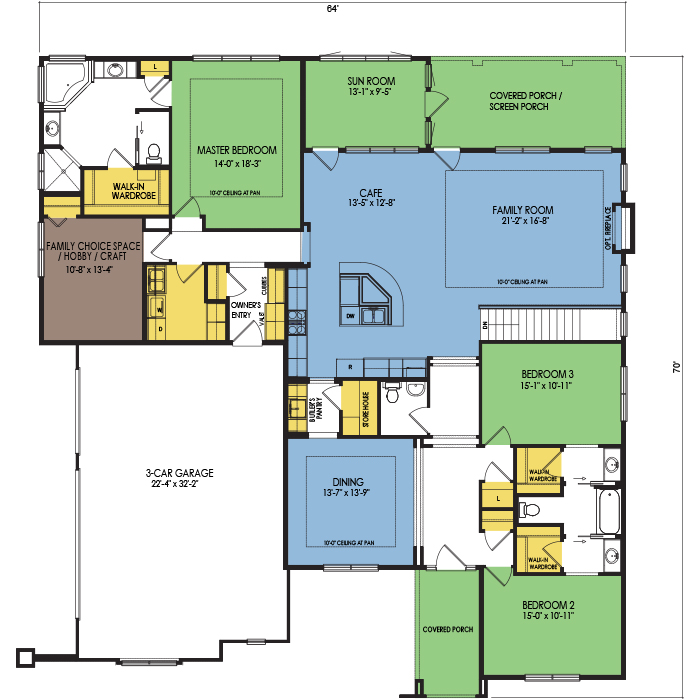 A part of our Resort Series, the Lafayette floor plan features 3 bedrooms and 3.5 bathrooms with a foot print of 64x68 feet and 2915 total square feet of living space. Floor Plan #RN180