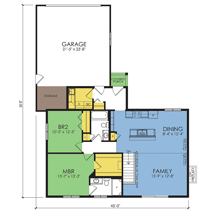 A part of our Wausau Originals, the Mountview floor plan features 2 bedrooms and 2 bathrooms with a foot print of 45x56'8" feet and 1212 total square feet of living space. Floor Plan #WO610