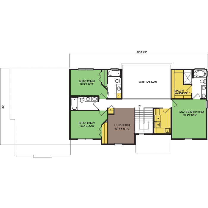 A part of our dream series, the tamarack floor plan features 3 bedrooms and 1.5 bathrooms with a foot print of 44x30 feet and 1342 total square feet of living space.